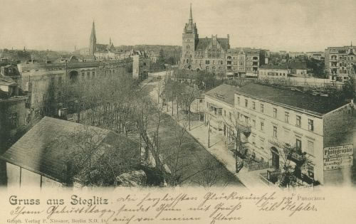Blick aus der Düppelstraße in Richtung Albrechtstraße und Rathaus (um1905)