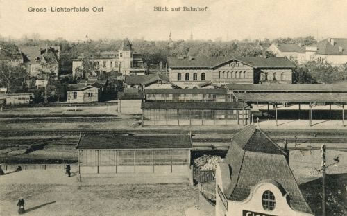 Der Bahnhof Lichterfelde-Ost liegt an der Anhalter Strecke; Blick vom Kranoldplatz nach Lichterfelde-West